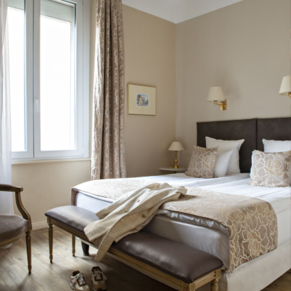 Our preferred category GOLD hotel is Grand Hotel Bristol. The Grand Hôtel Bristol in Colmar is a historic hotel located across from the train station. Built in the early 1900s, it combines classic charm with modern comfort. Guests can enjoy the stylish Zuber lounge, bright meeting rooms, the authentic Brasserie l’Auberge, and 91 quiet, well-decorated rooms.