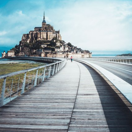 The day starts with a scenic drive in a comfortable minivan between Bayeux and Mont-Saint-Michel. You will understand why Normandy is known across the world as the cradle of Impressionism. After some time on your own for lunch, you will head to the world-famous Mont Saint-Michel. Located on a tiny island 1 km away from the coast, the sight of this medieval fortified village and its hilltop abbey founded over 1300 years ago seems unreal. Stroll through the main street full of narrow half-timbered houses to the entrance of the abbey. The abbey consists of shocking vertical granite constructions with gigantic staircases. Discover “The merveille” with first the cloister and its breathtaking view of the sea, then the chapter room, the refectory, the knight's room, the small chapels, the crypts, etc. This is a labyrinth, and your local guide will be of great help! You will finish the day on the mighty fortified walls to observe the infinite bay and take memorable pictures before returning to Bayeux at about 16:30 hrs.