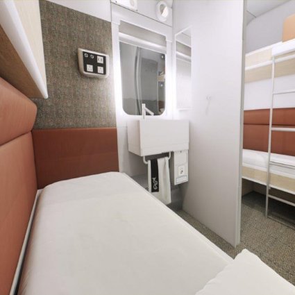 The classic room is a twin bunk-bed accommodation and has an in-room sink to freshen up, multiple charging points, key card entry system and in-room temperature control. Room service is available.