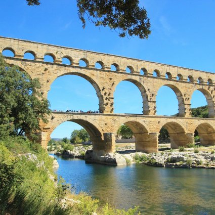 Enjoy some free time for lunch (not included), in Fontaine de Vaucluse where you can admire the impressive resurgence of the Sorgue. After this break, you will head to the Pont du Gard (entrance included) to visit the best preserved aqueduct of the Roman era, dating from the 1st century and classified by UNESCO. Your next stop will be Les Baux de Provence, this famous village situated on a rock at an altitude of 245 metres will charm you with its pedestrianised historic centre. Enjoy some free time to visit this medieval village and don't miss its beautiful 16th century houses and the St Vincent church!