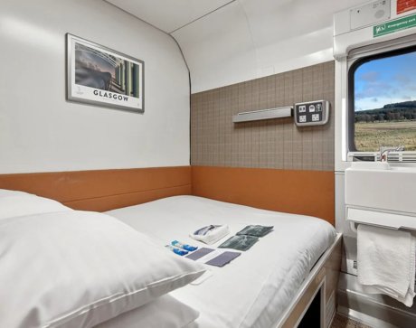 The Club Double Rooms are the most exclusive rooms, with premium mattresses on double beds. in-room facilities include an en-suite shower and toilet, amenity bag containing Scottish toiletries, multiple charging points, in-room temperature controls and a secure key card entry system. Priority access to the Club Car with advance reservations and room service is available.